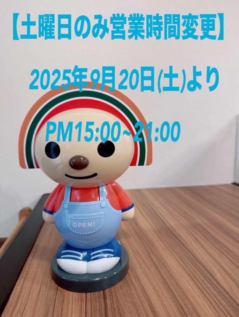 【毎週土曜日のみ営業時間変更のお知らせ】